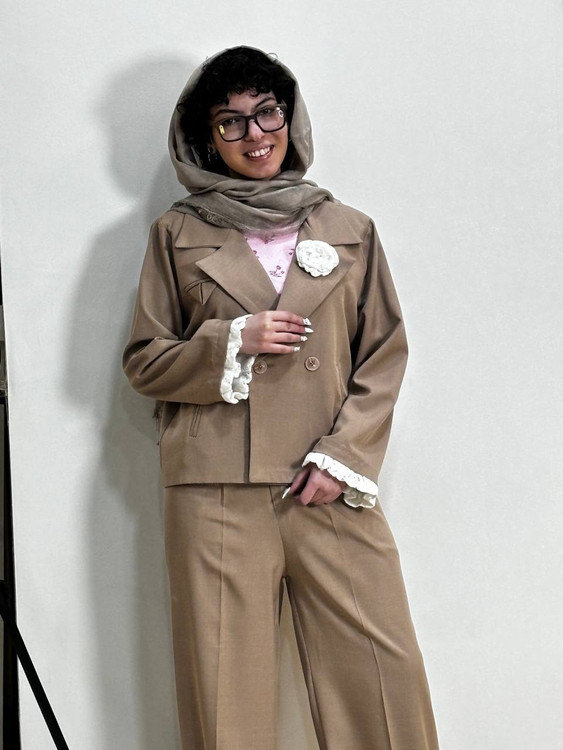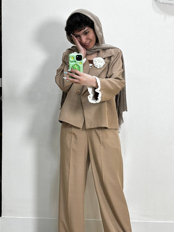 کت شلوار شرکتی (کت مدل کراپ باقد۵۵)جنس بزیاق-دانتل دوزی شده