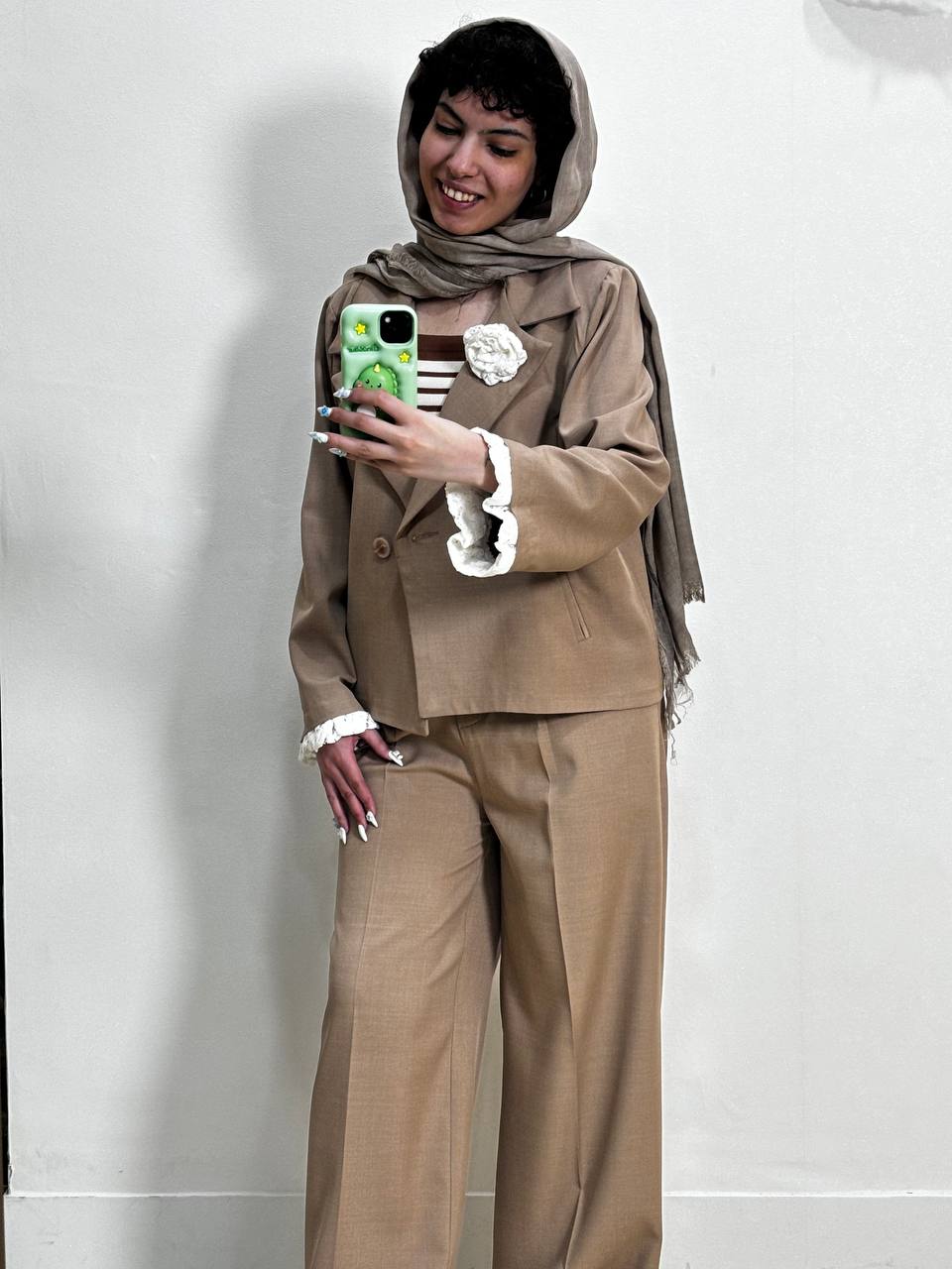 کت شلوار شرکتی (کت مدل کراپ باقد۵۵)جنس بزیاق-دانتل دوزی شده