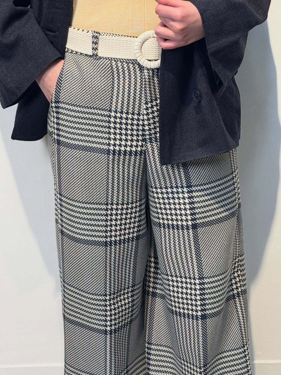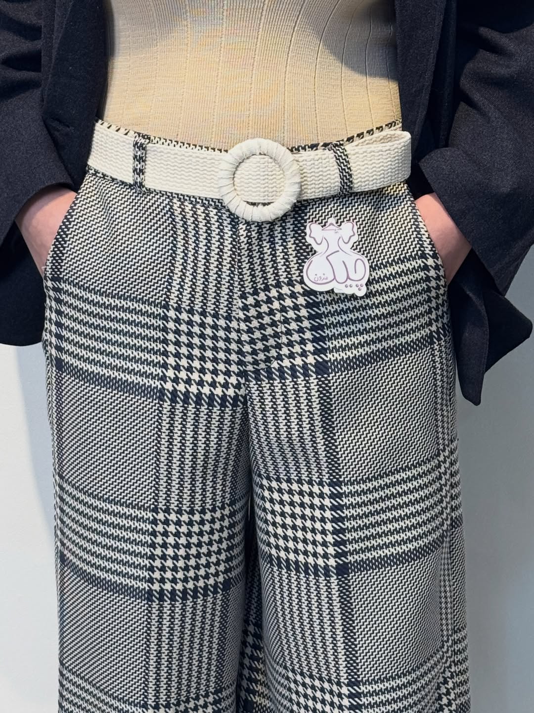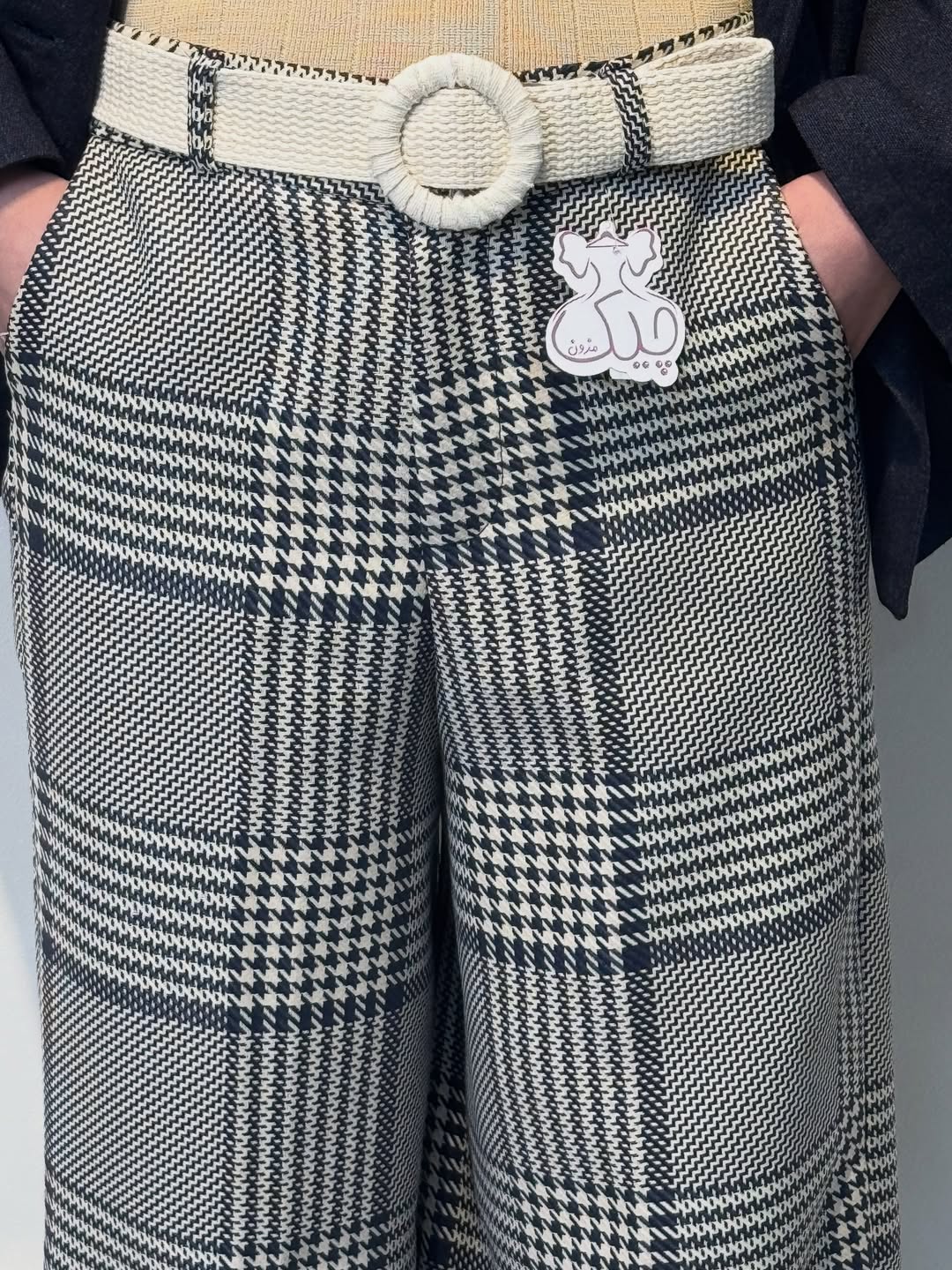 شلوار کشمیر چهار خونه دورنگ قهوهای استخوانی مدل بگ سایز ۴۰-۴۶